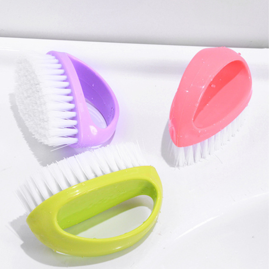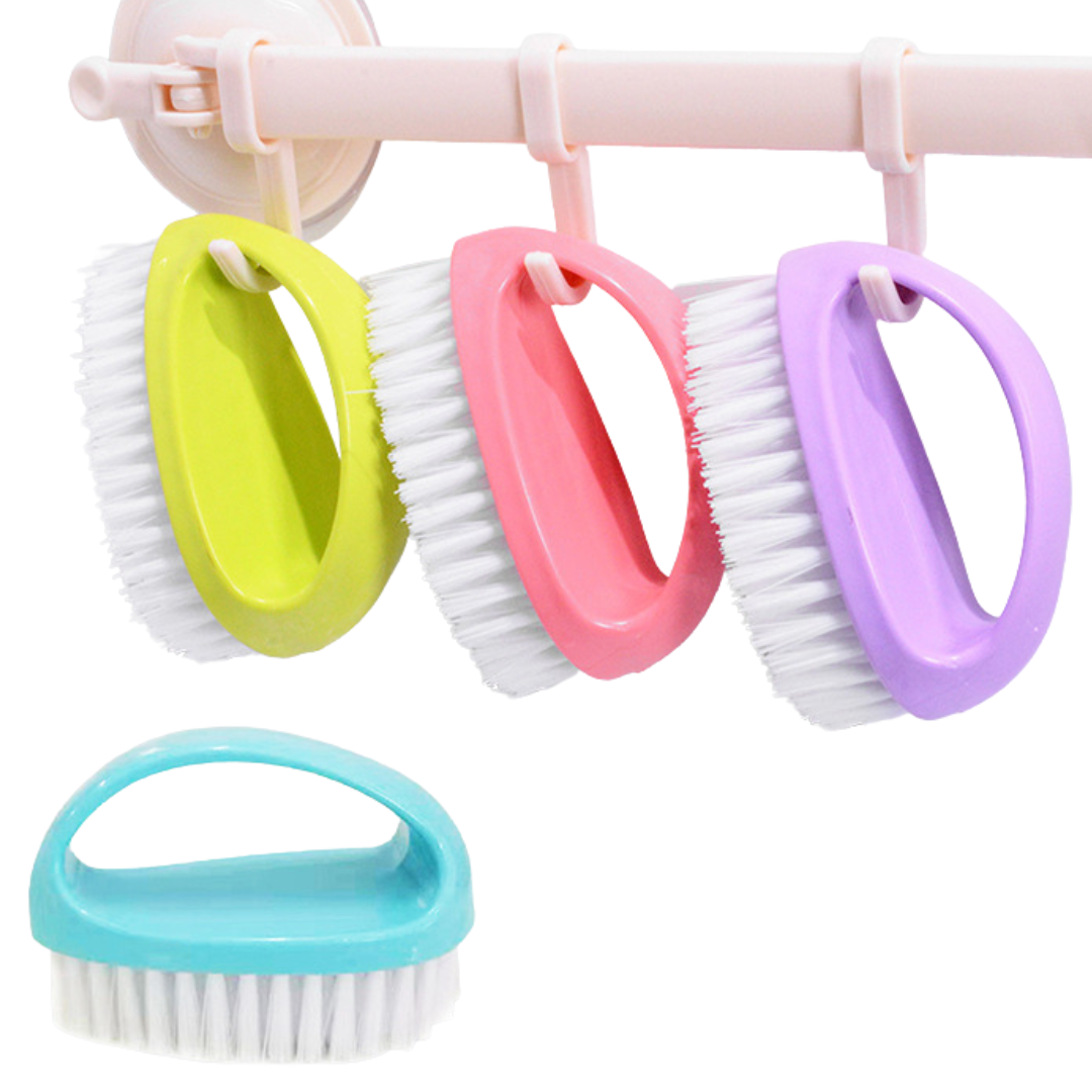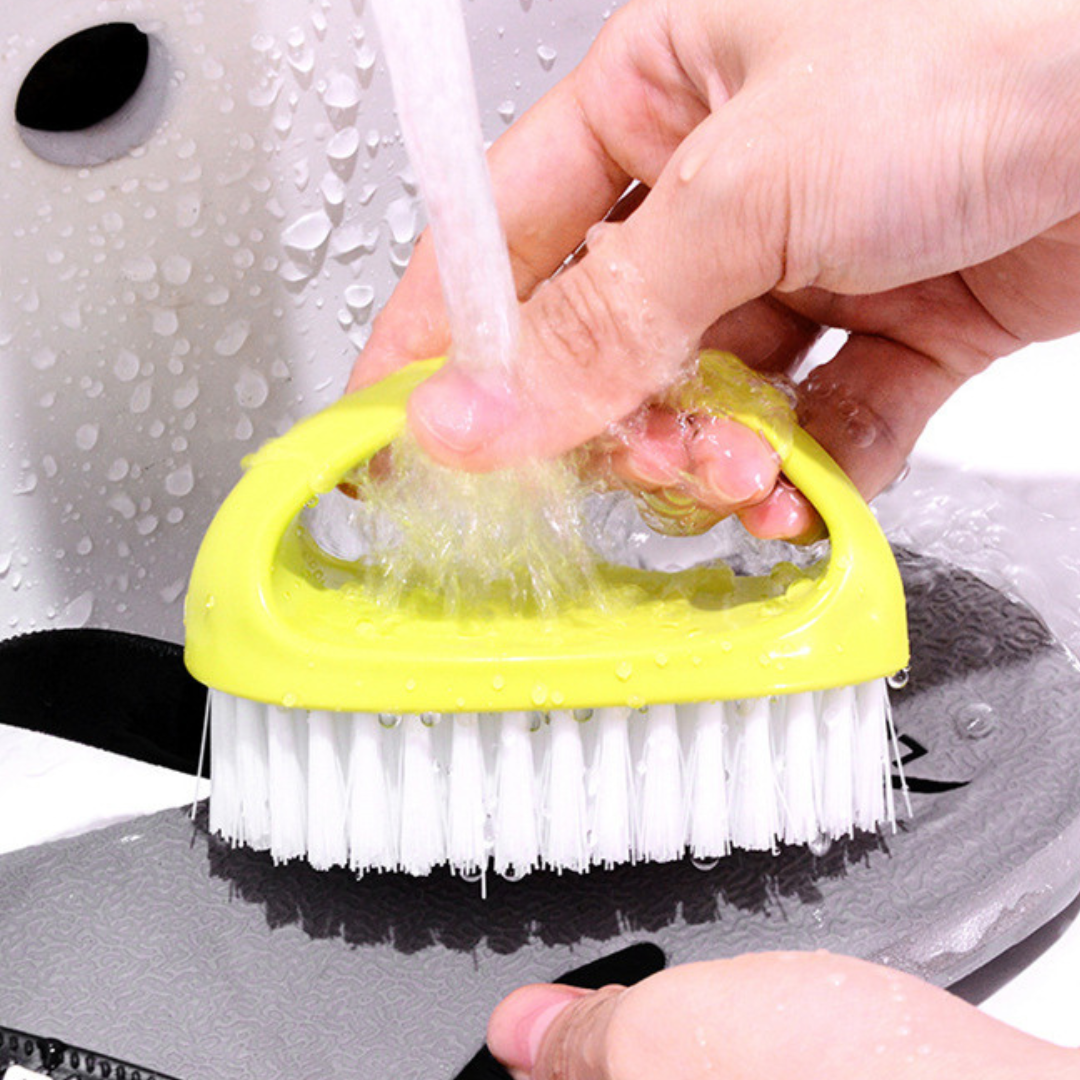 A pack of 4 multi-purpose cleaning brushes, available in blue, green, purple and pink. Each brush features a plastic handle with synthetic bristles, making it lightweight and perfect for home cleaning, including bathrooms, kitchens, and more.