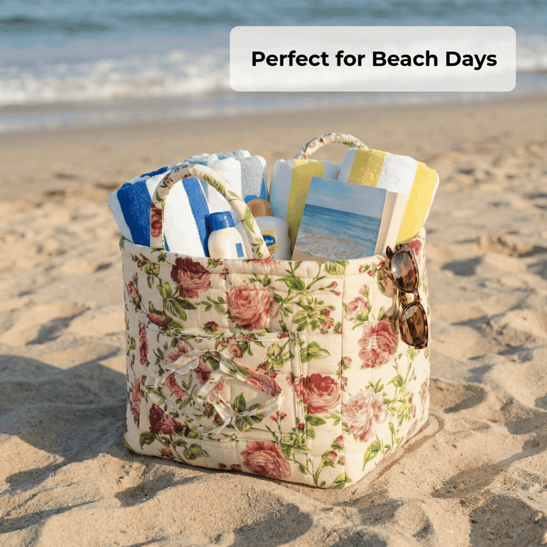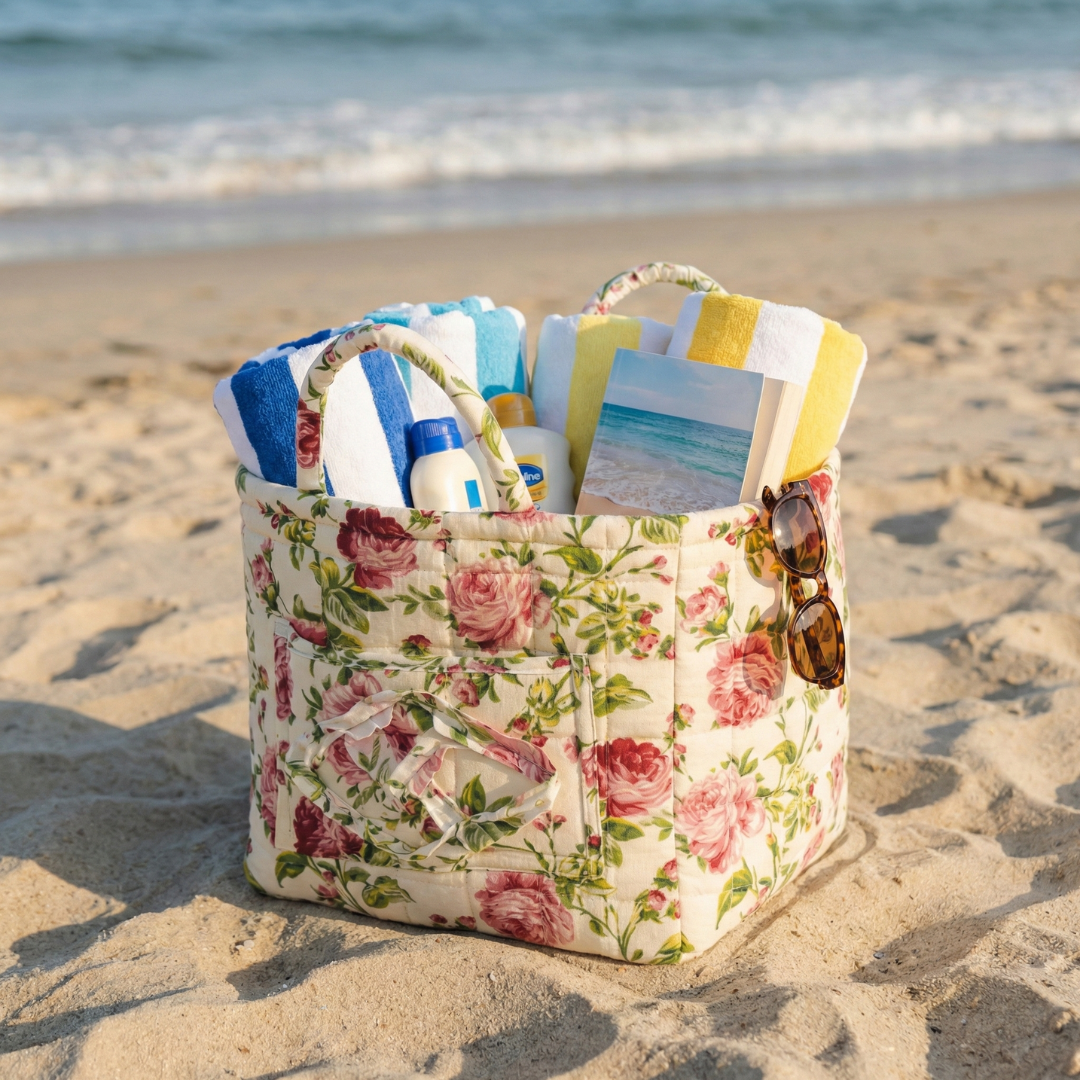 Foldable Fabric Bag with Floral Pattern