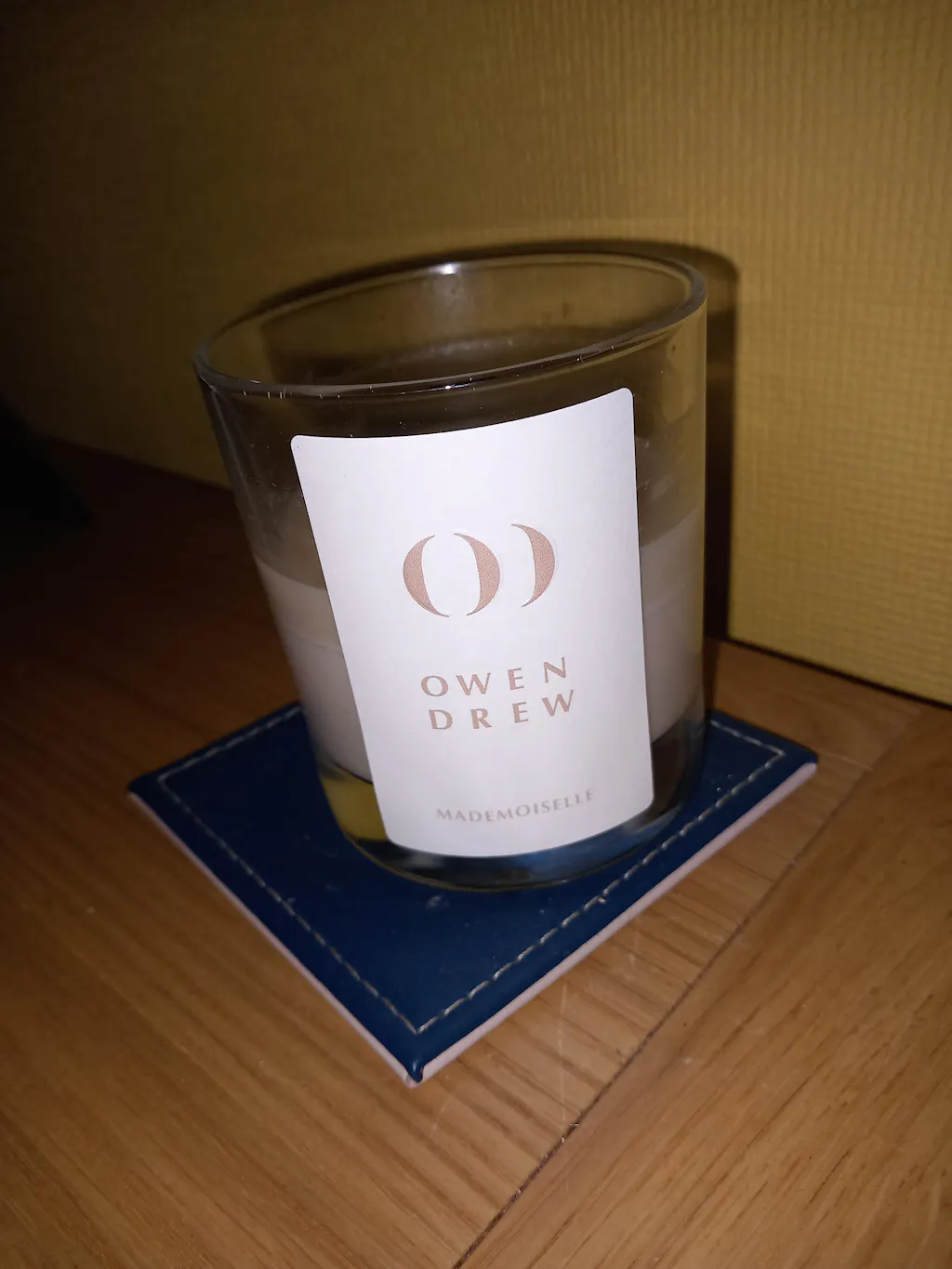 Owen Drew England Mademoiselle Luxury Candle - smells like the desirable popular fragrance. Top notes of Oriental Blossom and Orange Mandarin are accompanied by middle notes of Turkish rose, Ylang-Ylang and Vanilla. A foundation of warm Patchouli gives this scent elegant completeness.
